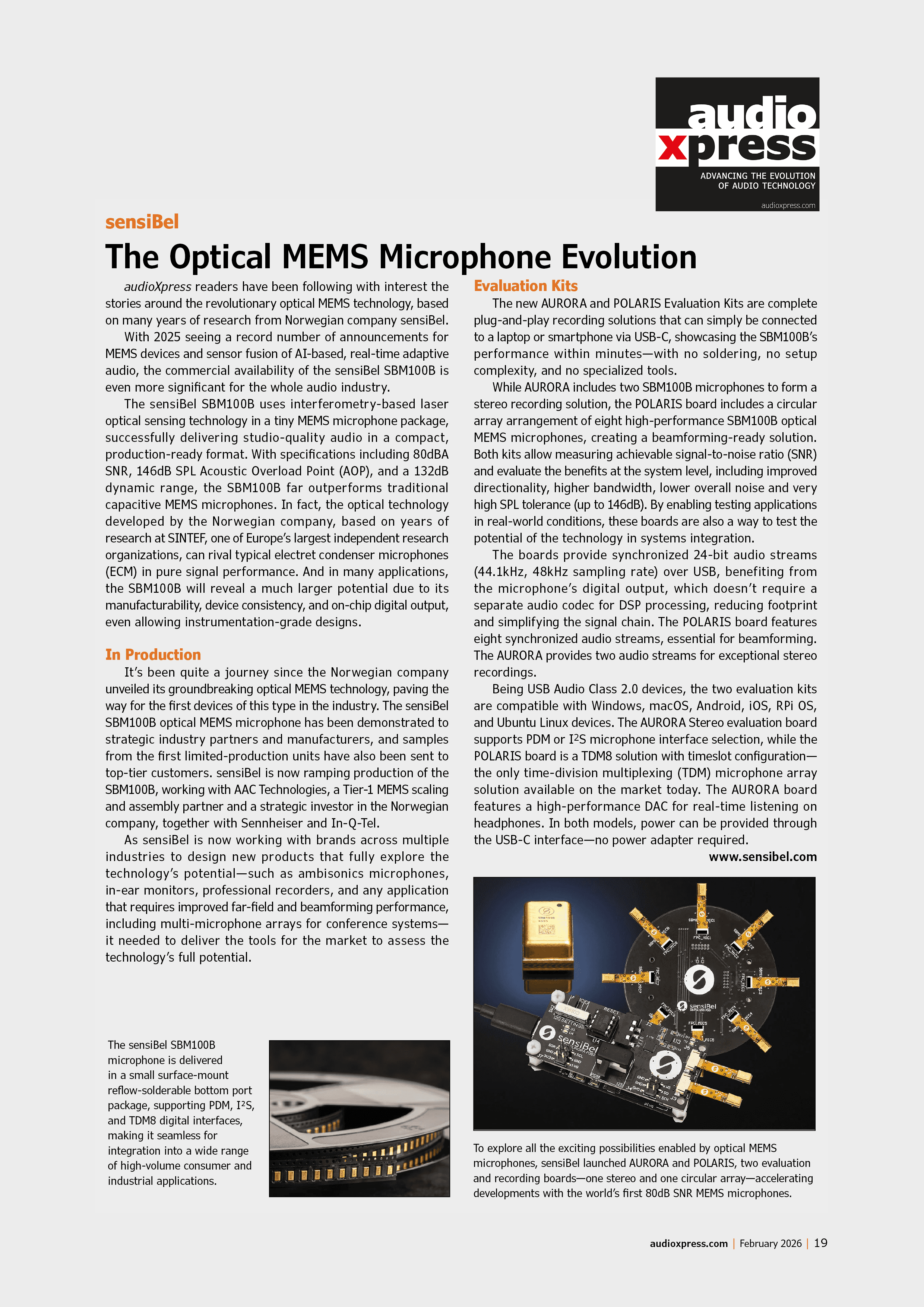 audioXpress, a leading publication for audio technology professionals, has published an in-depth article about sensiBel’s Evaluation kits